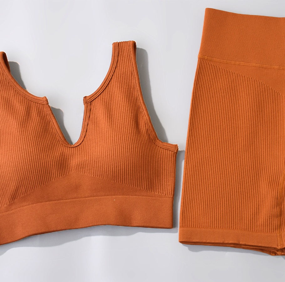 1. Introducing our Factory Ribbed Fitness Clothes, a perfect choice for women who are passionate about fitness and style. This fitness bra and biker shorts set is designed to provide maximum comfort and support during your workouts. Made from high-quality ribbed fabric, it offers a snug fit that moves with your body, allowing you to focus on your fitness goals without any distractions.