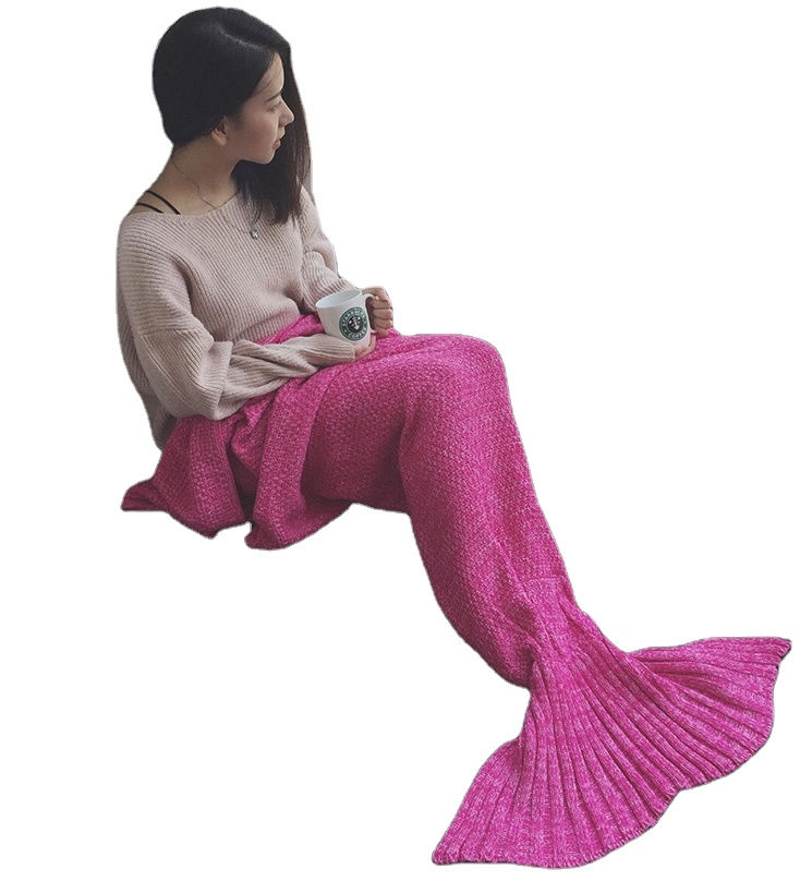Wholesale Factory Custom 100% Acrylic Knitted Blanket Mermaid Tail Kid Throw